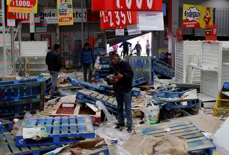 對於當局的軟硬兼施,示威民眾並沒有離開街頭,期間也出現了許多混在示威場合中趁亂打劫的暴徒。周日(20),一間位於聖地亞哥郊外的服裝工廠就被暴徒縱火,造成五人死亡。