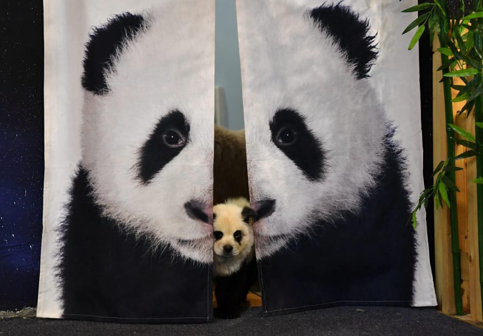 在四川省成都市的一間寵物咖啡廳內,一隻鬆獅犬被染上了黑白雙色,遠看就像一隻圓滾滾的小貓熊。