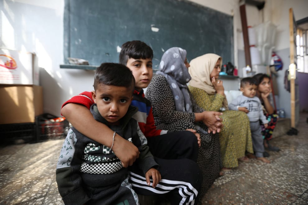 在位於東北部的哈塞克市(Hasakah),遭到土耳其軍隊攻擊的庫德人待在充作收容所的學校內避難。