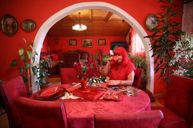 羅伯妮克追求「紅通通」的旅程已經將近 50年,就連她結婚時也是穿著紅色婚紗、參加葬禮時也沒有穿傳統的黑色衣服,而是紅色。羅伯妮克還特別從印度買來一塊紅色花崗岩,好用來打造自己的墓碑。