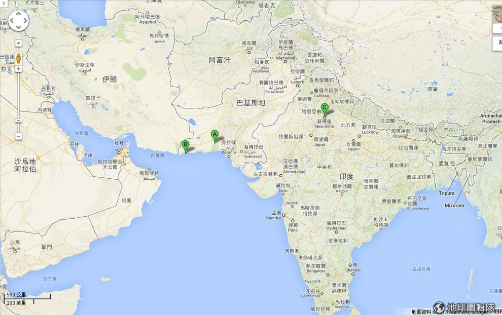 上圖 A點為發生地震的巴基斯坦亞瓦蘭縣(Awaran),B點是出現新島嶼的瓜達爾地區(Gwadar),C點是印度的首都德里(Delhi),本次地震相當地強烈,連遠在印度的德里也可以感受到。
