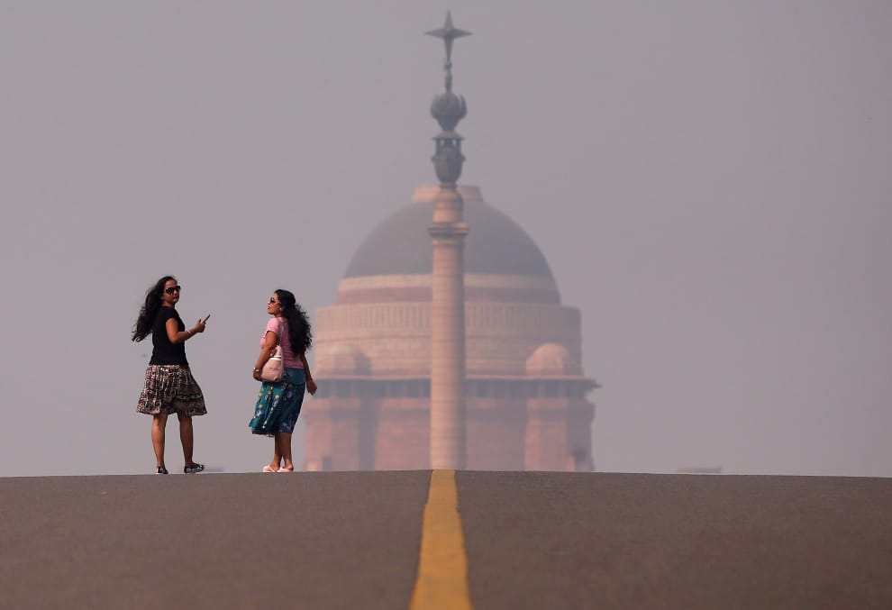 在一個霧霾密佈的日子,新德里(New Delhi)的街頭也顯得霧濛濛一片。