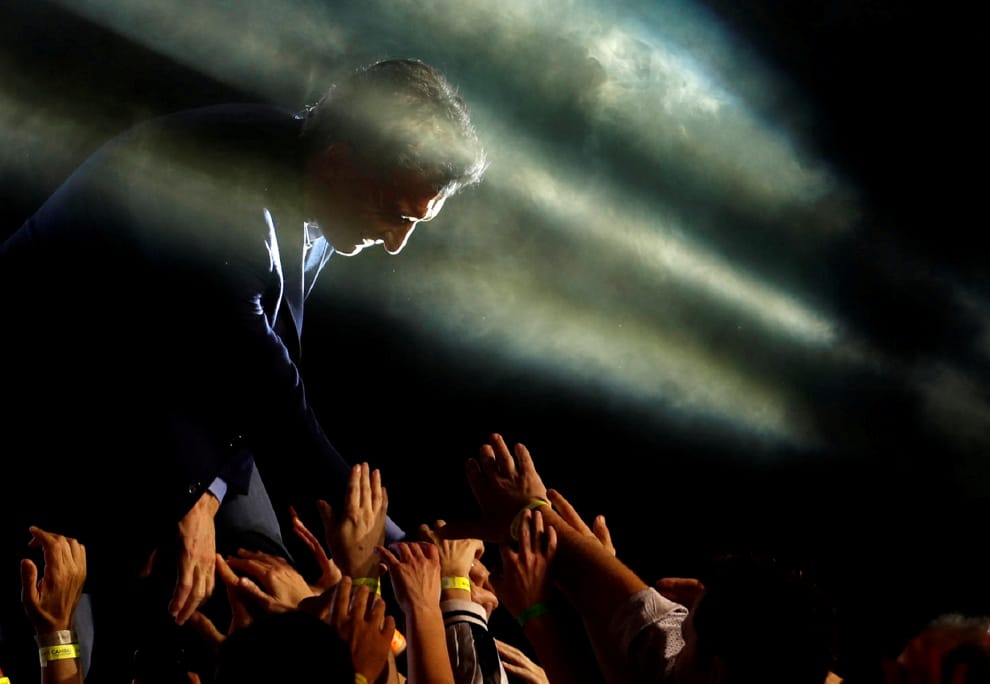阿根廷總統馬克里(Mauricio Macri)在造勢晚會上和支持者打招呼。