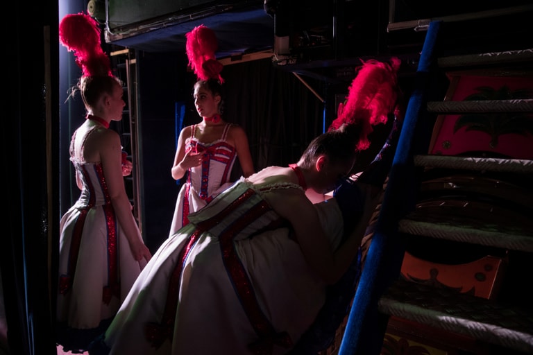 今年 27歲,已經在紅磨坊跳了 7年舞,而且已經升為首席舞者 3年的愛爾蘭舞者范登伯格(Claudine Van Den Bergh)說:「包含舞者、助理和技師在內,整個團隊都必須非常有組織。」
