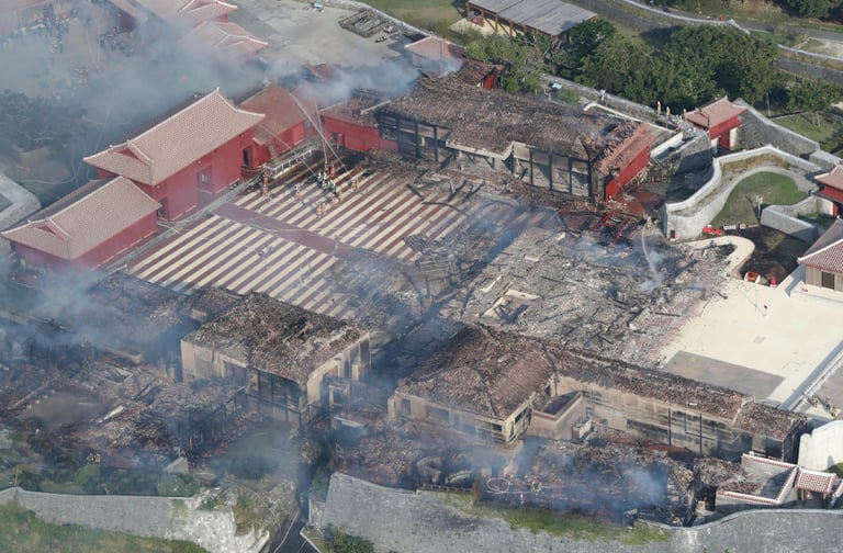 今天(31)凌晨兩點半左右,位於日本沖繩縣那霸市、有 500多年歷史的琉球王國古王宮首里城遺址發生大火,從木造結構的正殿開始延燒,包含北殿、南殿、鎖之間、黃金御殿和二街御殿等建築物被燒毀,受災面積大約 4,200平方公尺,而這些木造建物內部都沒有安裝灑水器,讓火勢一發不可收拾,一直到上午大約十一點鐘火勢才被撲滅。目前,當局尚不清楚起火原因。