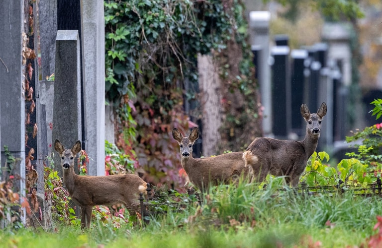 在維也納中央公墓,幾隻鹿悠悠哉哉地漫步於此。