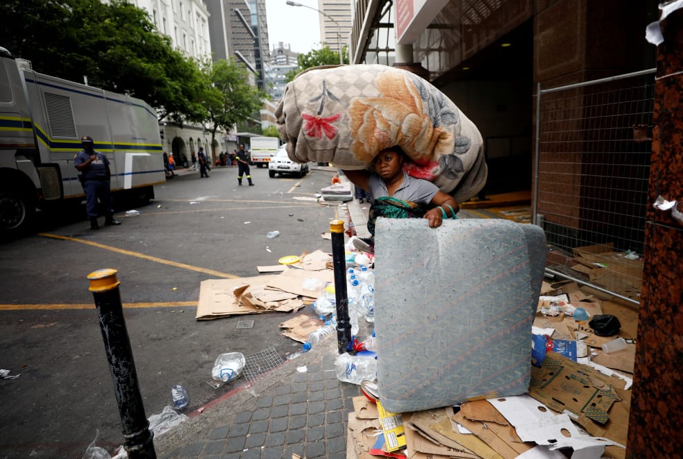 在聯合國難民署(UNHCR)位於首都開普敦(Cape Town)的辦公大樓外,移民收拾好家當,準備移動到其他地方。