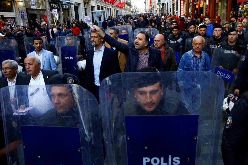 這些人本來是在發放庫德斯坦工人黨要舉辦黨員大會的傳單,土耳其警方指出,他們是因為這群人拒絕服從才會採取這樣的方法;一名庫德斯坦工人黨的伊斯坦堡議員則隔著警盾,呼籲大家記得來參加黨員大會。