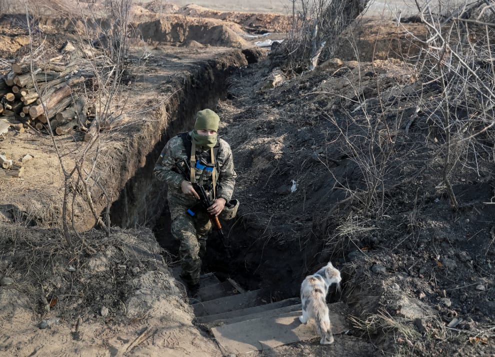 在自行宣布獨立的盧甘斯克州(Lugansk),一名士兵從壕溝中走了出來。