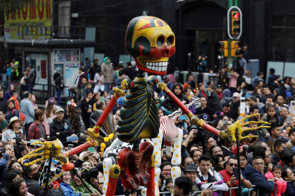 在亡靈節(Day of the Dead)的慶祝遊行上,人們紛紛上街參與了這歡樂的一刻。