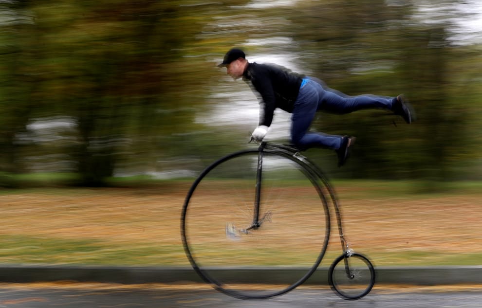 首都布拉格迎來了一年一度的老式自行車競賽,只見參賽者個個拿出絕活一較高下。