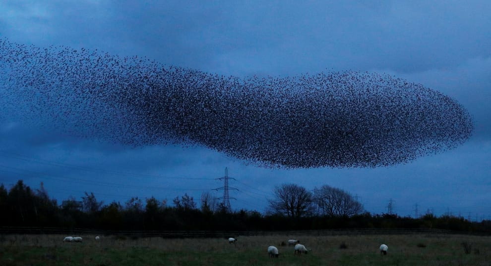 根據世界最大的環保資訊網站《Mother Nature Network》,椋鳥為了躲避猛禽的攻擊會群聚在一起飛行,飛翔的時候不停變換隊形,有時候是愛心,有時候是沙漏,且鳥群換隊形的動作時間非常迅速流暢,就像是流水在流動一樣。