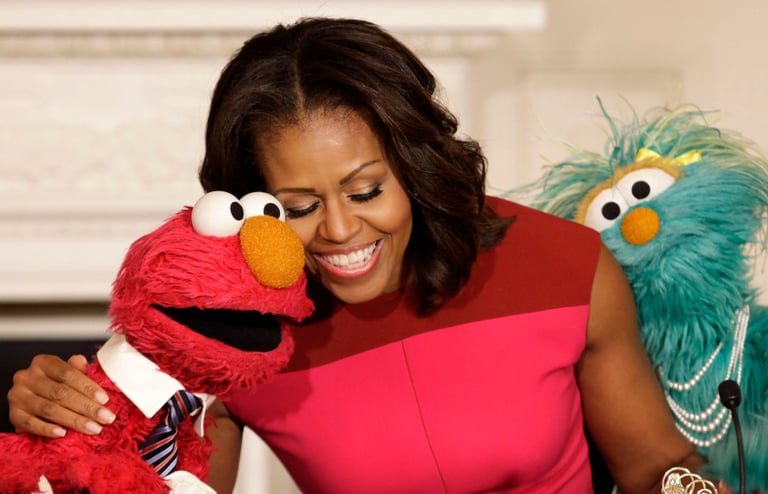 2013年,美國第一夫人蜜雪兒歐巴馬(Michelle Obama)追隨前第一夫人芭芭拉布希(Barbara Bush)、希拉蕊柯林頓(Hilary Clinton)和蘿拉布希(Laura Bush)的腳步出現在《芝麻街》中,向兒童宣導健康飲食的重要。當時,她曾說:「上《芝麻街》這個節目或許是我在白宮做過最棒的事。」