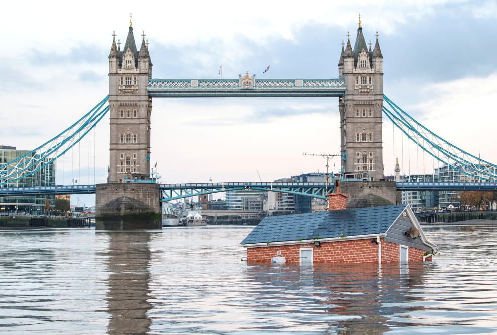 10號早上,英國環保示威組織「滅絕反叛」(Extinction Rebellion)將一棟長得像郊區房舍的複製品丟進倫敦泰晤士河中,希望藉此讓大眾注意到全球暖化造成的海平面上升議題,並且呼籲政府對氣候變遷採取行動。