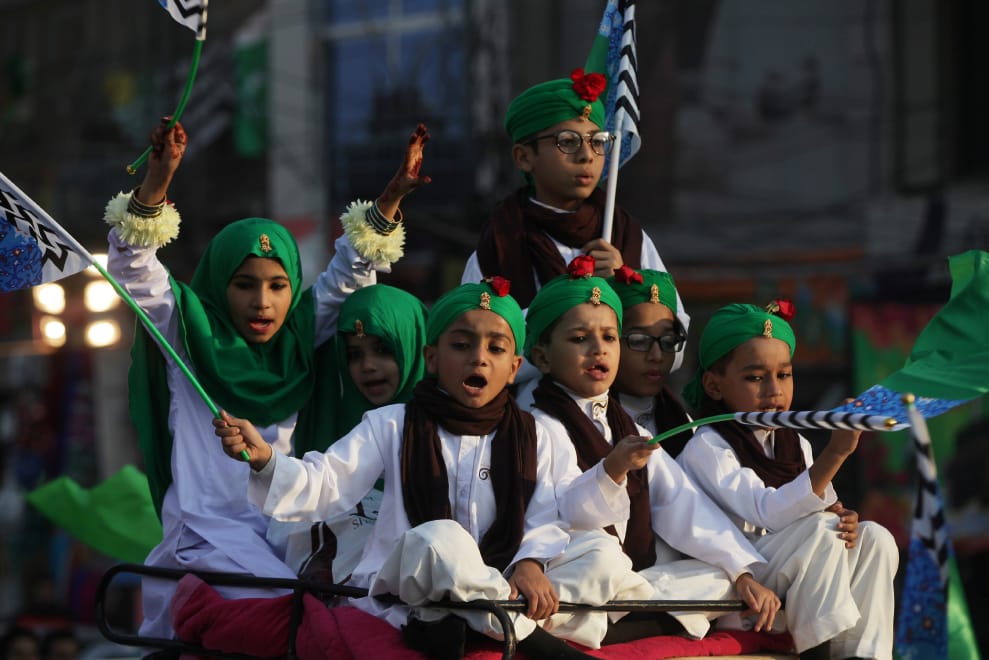 在巴基斯坦第二大城拉合爾(Lahore),孩子們穿上傳統服飾,慶祝伊斯蘭教先知穆罕默德(Prophet Mohammad)的生日,這天也被稱作「聖紀節」(Eid-e-Milad-ul-Nabi)。