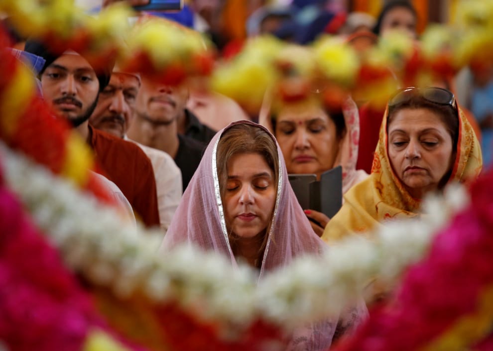 在印度東南部的清奈(Chennai),錫克教信徒們在一所神廟中慶祝錫克教宗師與創始人古魯那奈克(Guru Nanak)的 550周年誕辰。