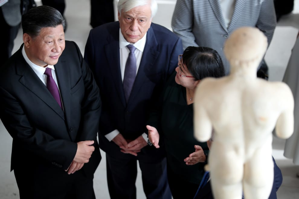 在雅典衛城博物館內,中國領導人習近平在希臘總統帕夫洛普洛斯(Prokopis Pavlopoulos)的陪伴下欣賞館內的大理石雕像,替為期三天的國是訪問畫下句點。