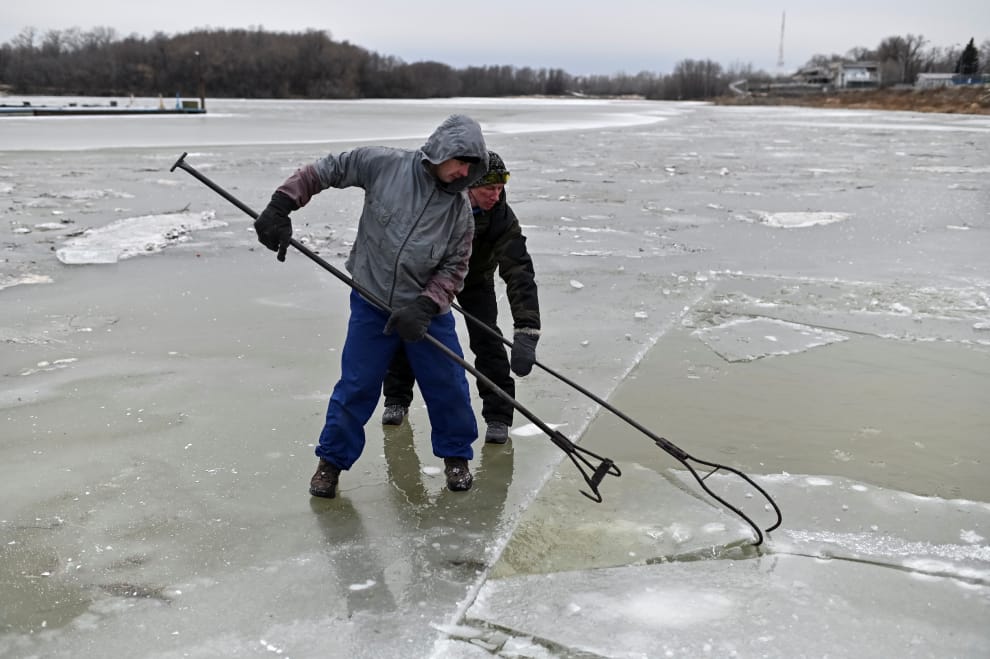 在結凍的額爾濟斯河(Irtysh River)上,冬泳俱樂部的成員忙著在河上鑿出泳池,等不及要來「暢游」一番。