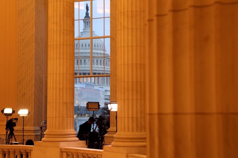 電視新聞團隊忙著架設燈光,為幾個小時後、彈劾美國總統川普(Donald Trump)的公開聽證會做好準備。這場聽證會上由前美國駐烏克蘭大使約瓦諾維奇(Marie Yovanovitch)參與作證。