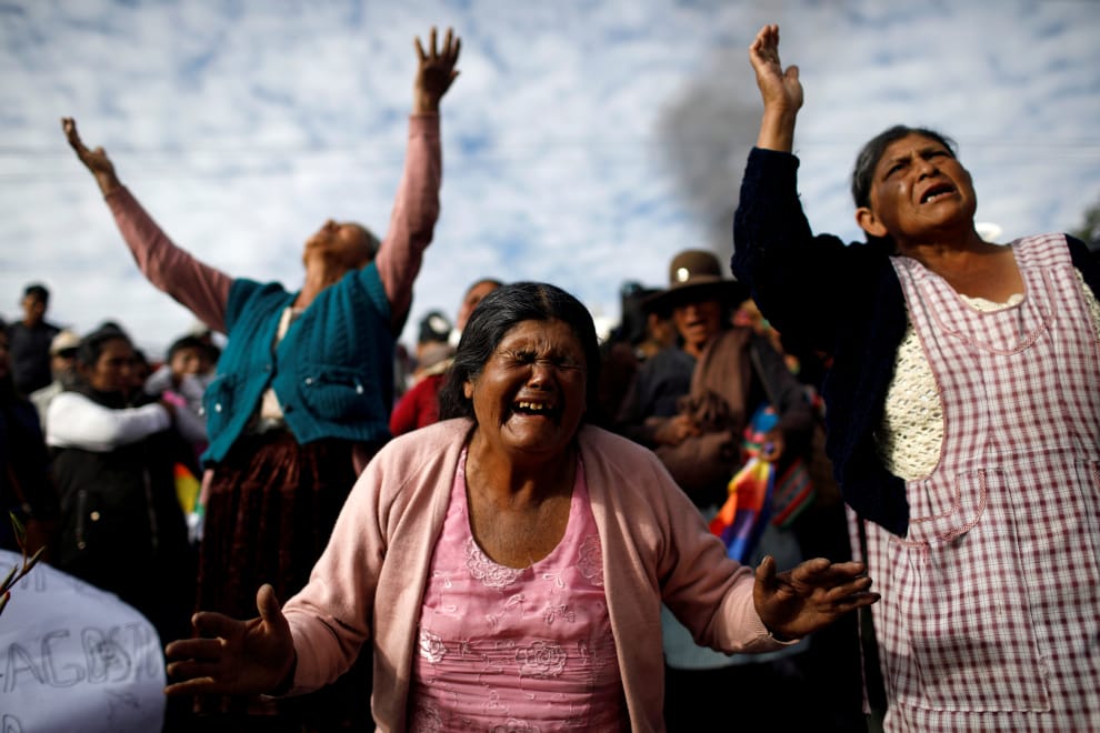 玻利維亞前總統莫拉萊斯(Evo Morales)的支持者走上街頭,除了表達對莫拉萊斯的支持,也為一名在示威途中被鎮暴警察殺死的男子哀悼。