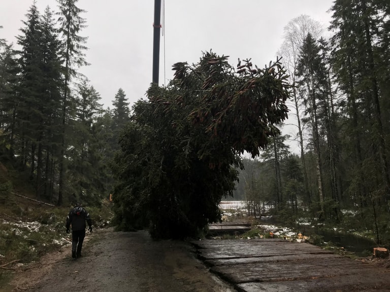 本周二(19),挪威當地與來自英國參訪的官員共同出席了在奧斯陸森林舉辦的砍伐典禮。當天天氣飄著細碎的毛毛雨,伴隨著兒童合唱團的現場演唱歌聲,一棵高 24公尺的雲杉(Spruce)被俐落砍伐。