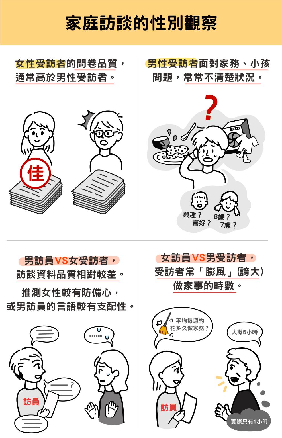 完成訪談平均要花 40 分鐘,而且家庭人丁越興旺訪談越久,最長曾到 1.5 小時。受訪者有時會不耐煩:「這些上次不是問過了嗎?怎麼每次都再問一次!」黃奕嘉說,工作、婚姻狀態短期也許變動不大,但「不變」也是很重要的資訊。