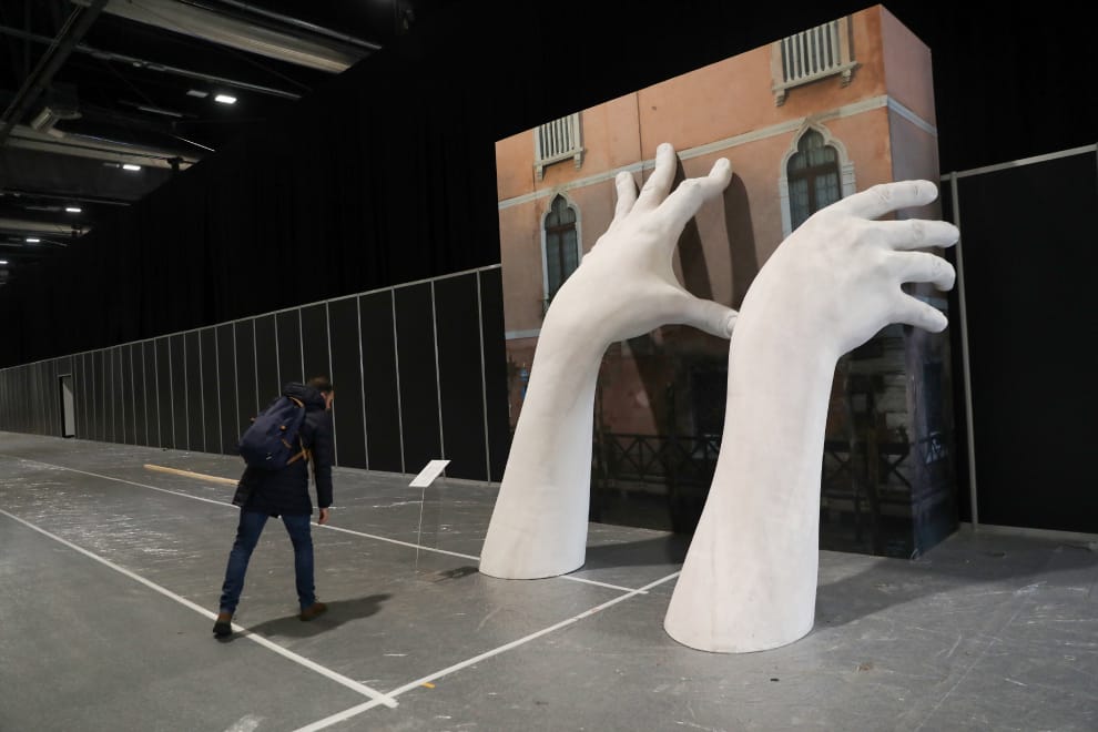 在馬德里會展中心,一名男子正在檢視裝置藝術,這裡即將在 12月2日召開為期 12天的聯合國氣候變遷會議。