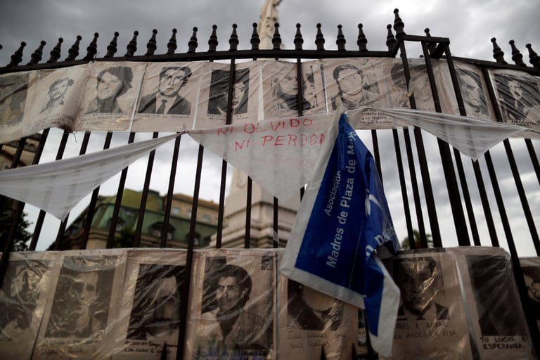 在首都布宜諾斯艾利斯的五月廣場(Plaza de Mayo),阿根廷人權組織「五月廣場祖母」將一張張失蹤人口照片掛了起來,一旁的布條上寫到「不會忘記,也不會原諒」,藉此喚醒大眾關注在阿根廷遭獨裁統治時期,那些「被消失」的民眾。