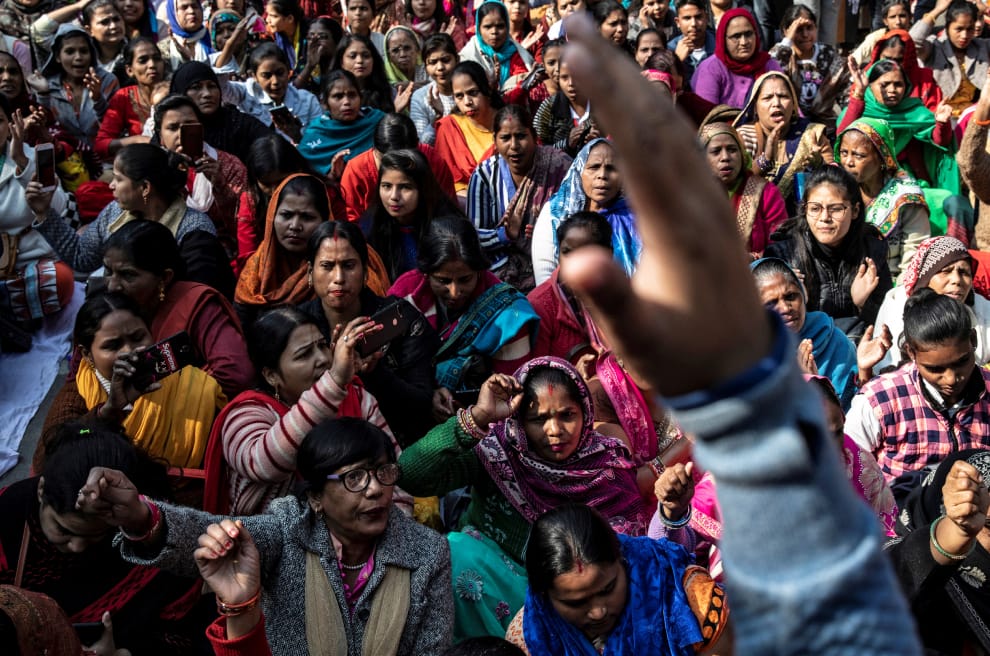 示威者聚集在新德里街頭大喊著口號,抗議上周在城市海得拉巴(Hyderabad),一名 27歲的女獸醫在下班時被輪暴並殺害。