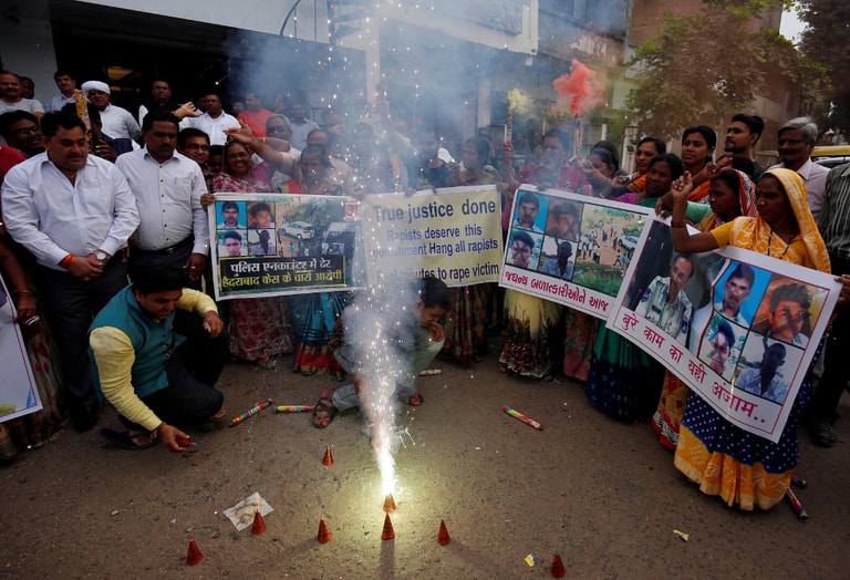 不論如何,在先前在抗議聲浪中,就傳出希望 4名嫌犯被處死的聲音。因此整件事立刻在印度社會引起一片盛讚。