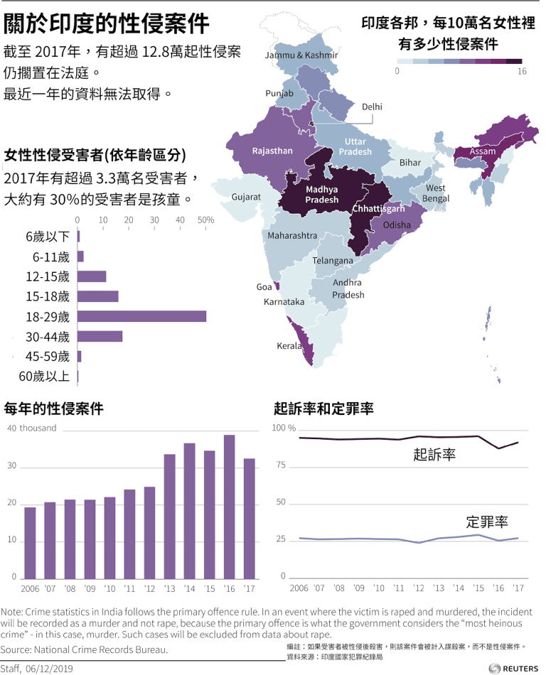 然而,根據《路透社》引據的官方數據,沒有任何跡象顯示針對印度女性的性暴力犯罪有緩減跡象,光在 2017年,警方有登記的性侵案就達 3萬3,658起,相當於每天都會發生 92起性侵案。