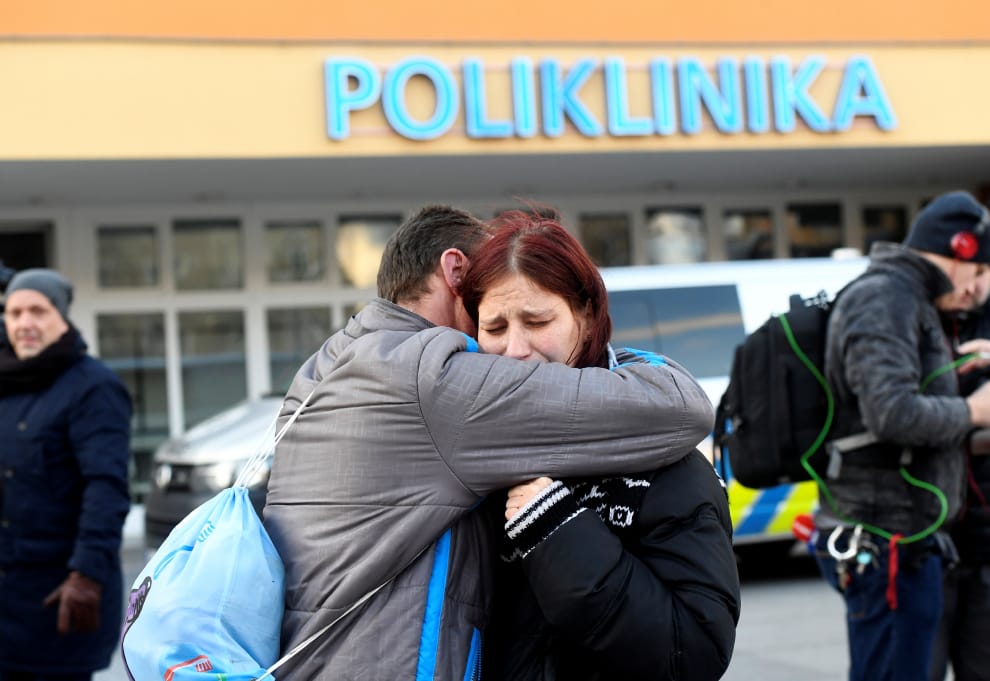 在奧斯特拉瓦(Ostrava)大學醫院外,一名男子緊緊抱住一名正在哭泣的女子。這裡剛剛發生一場槍案,一名 42歲的男子持槍闖入醫院等候室中,射殺了 6名民眾,隨後在開車逃離現場的途中自殺身亡。目前,當局仍在調查這名槍手的犯案動機。