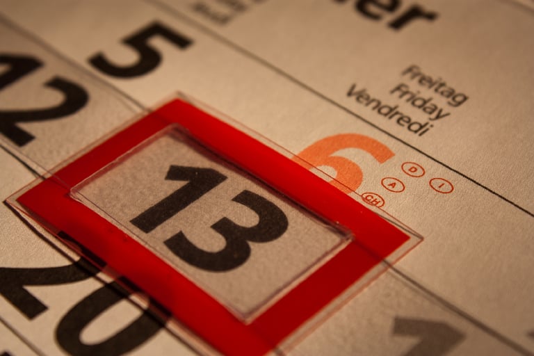 另一方面,在數百年來,星期五向來視為一周裡最不吉利的一天。造成這樣的原因有各式各樣的說法:耶穌是在星期五被釘在十字架處死、夏娃是在星期五給亞當吃禁果、該隱在星期五殺了亞伯、北歐女神弗麗嘉(Frigga)會在每個星期五聚集惡魔和 11名女巫一同參加「女巫聚會」(Witch’s Sabbath)。