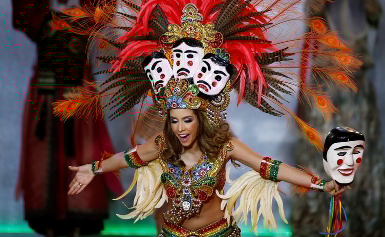 在倫敦舉辦的世界小姐(Miss World)選美總決賽上,來自玻利維亞的狄亞茲(Iciar Diaz)為台下觀眾帶來精彩的傳統表演。