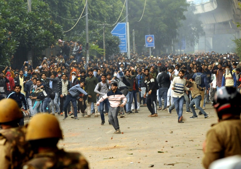 周日(15),這股抗議CAB的示威風潮吹到了新德里,國立伊斯蘭大學(Jamia Millia Islamia University)的學生和抗議群眾一起上街,人數加起來有 2,000人。目擊者表示,活動一開始很和平,但在其中一組暴力的示威民眾加入隊伍、和警察發生衝突後,情況便失控了。