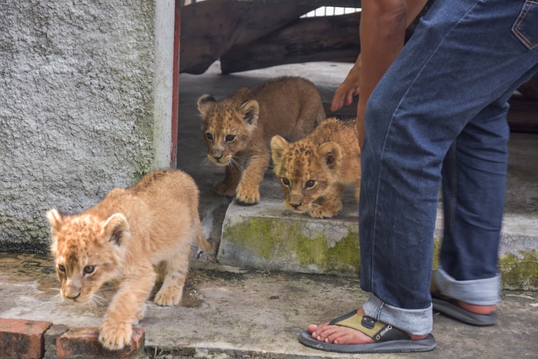 在位於蘇門答臘島東部的廖內省(Riau),被工作人員從走私販手中救下的小獅子走進牠們的新家。