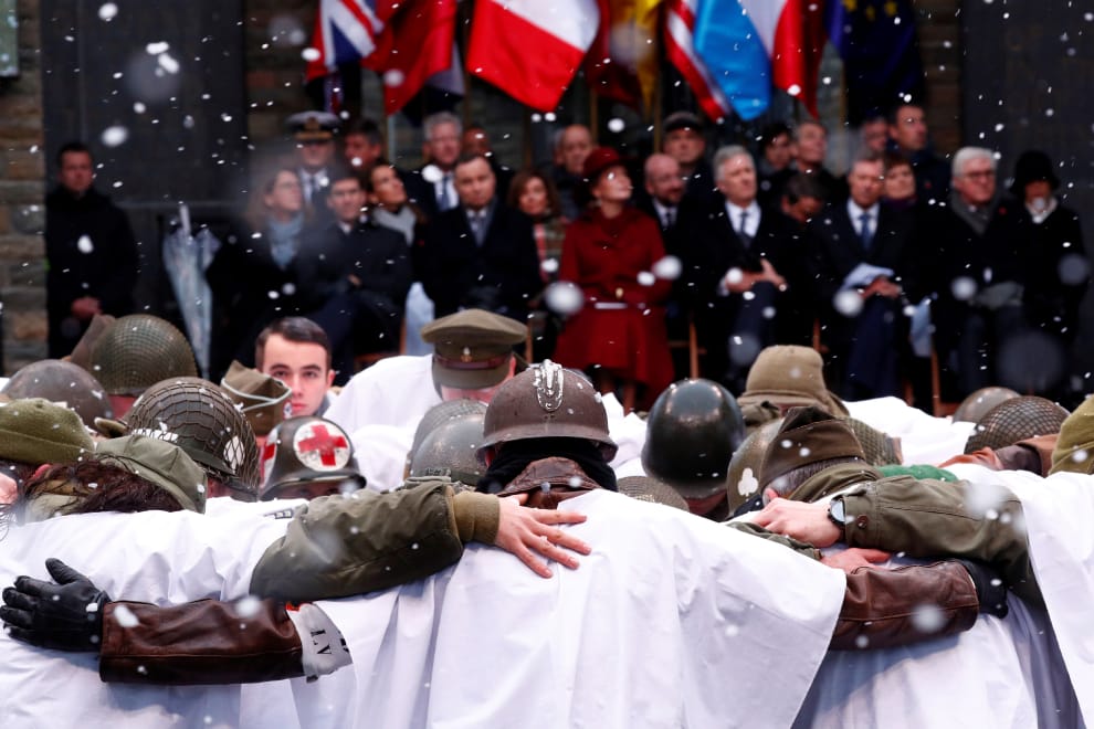 在與盧森堡接壤的巴斯通(Bastogne),人們在專門紀念二戰「突出部之役」(Battle of the Bulge)陣亡美軍的馬爾達森紀念館(Mardasson Memoria)參加「突出部之役」75周年紀念活動。這場戰役是美軍在諾曼第 (Normandy)登陸後,為了防堵納粹德國重新得勢最關鍵的戰役,也是美軍在二戰中死傷最慘重的戰役,陣亡人數高達 1萬9,000人。
