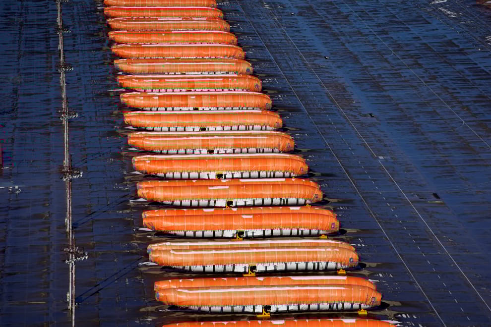 在堪薩斯州第一大城威奇托(Wichita),擺放著機身製造公司Spirit AeroSystems原本要送去給波音公司組裝的波音 737 MAX機身。