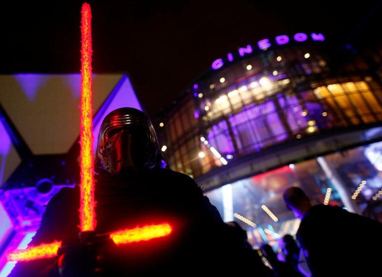 在科隆,《星際大戰》電影的粉絲們打扮成著名的電影角色,準備迎接最新系列電影《STAR WARS:天行者的崛起》的首映。