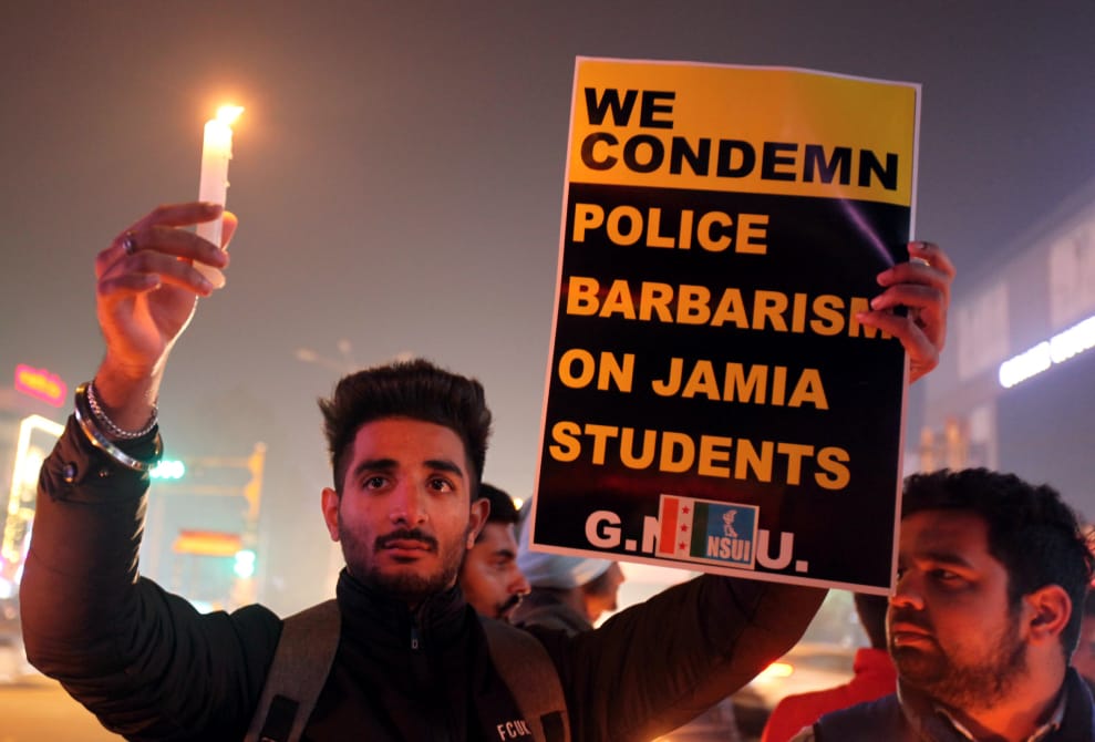 近日,國立伊斯蘭大學(Jamia Millia Islamia university)的學生們為了反對《公民身份修正法案》和警方發生嚴重衝突,警方也開始無差別攻擊抗議民眾、施放催淚瓦斯、痛毆學生,甚至是進入校園宿舍、圖書館、廁所等處將學生揪出來施暴,並且拘留了超過 100名學生。