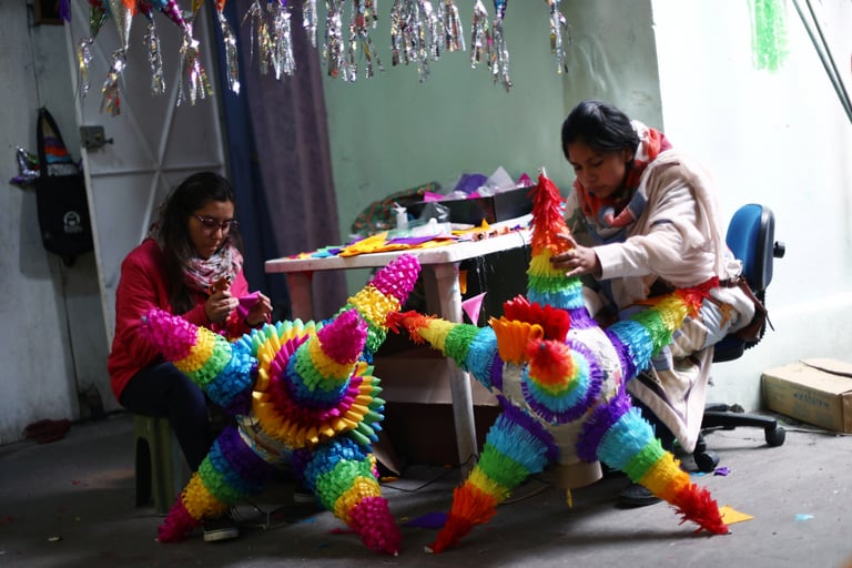皮納塔是一種紙糊容器,裡頭裝滿糖果和玩具,在慶祝活動上會被掛起來供人用棍棒擊打,打破後就會有滿頭的糖果和玩具澆下,增添節日歡樂氣氛。