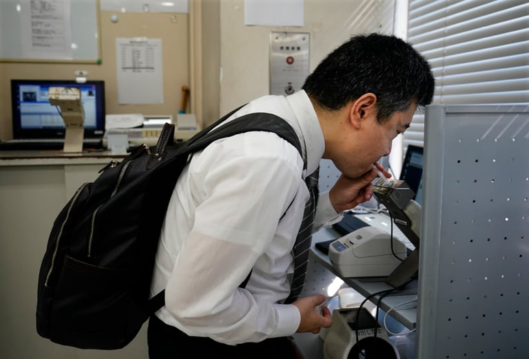 此外,Nihon Kotsu的計程車司機身上不准有紋身,也不准戴太陽眼鏡。如果是男性司機,得確認鬍子有刮乾淨。緊接著,他們得對著酒精濃度檢測儀吹氣,確定沒喝酒才能上路。