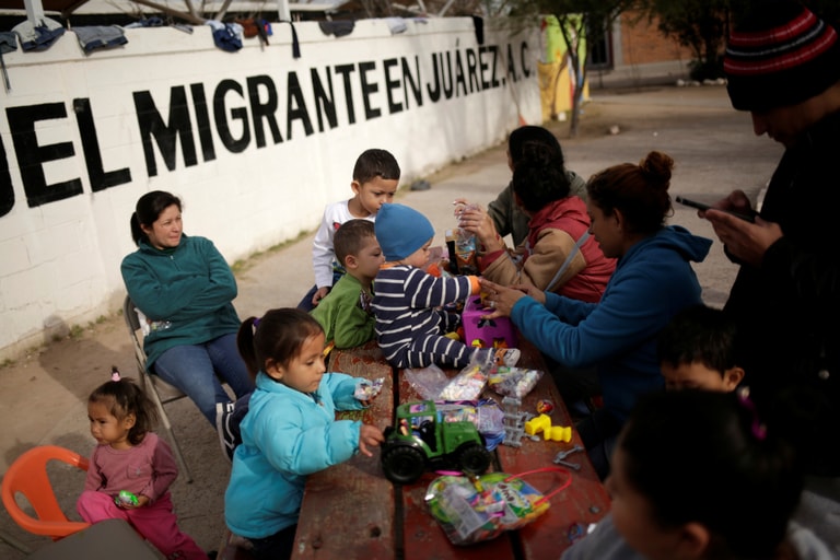 在墨西哥的庇護所裡,來自中南美洲的移民們一同參加了聖誕節派對。