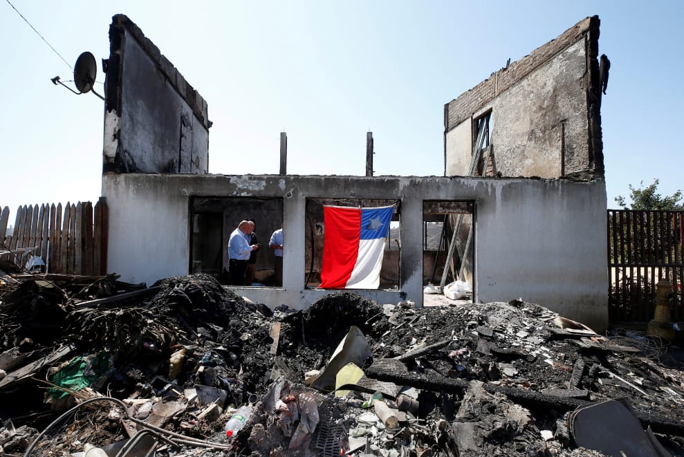 在智利立法首都瓦爾帕萊索(Valparaiso),只見一面智利的國旗掛在被野火燒盡的建築上。這一陣子,強風釀起的野火在這一帶迅速蔓延,吞沒了至少 150棟房子。