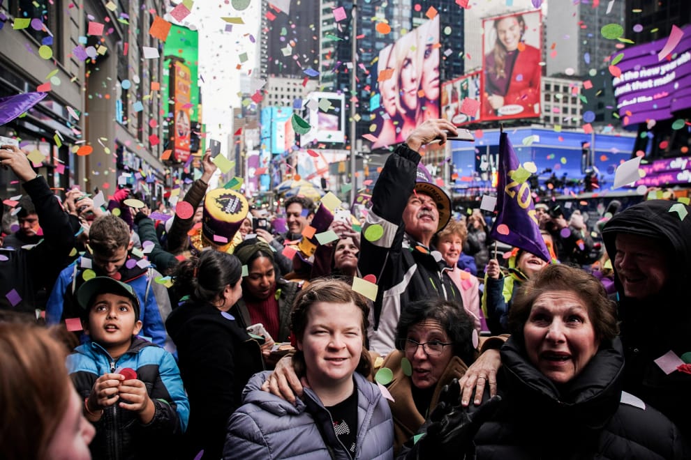 五彩碎紙灑落在時代廣場的硬石餐廳(Hard Rock Cafe)外,作為跨年活動測試的其中一部分。