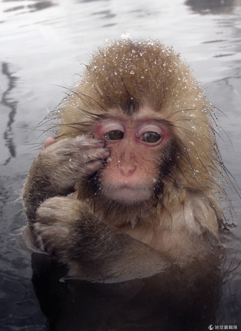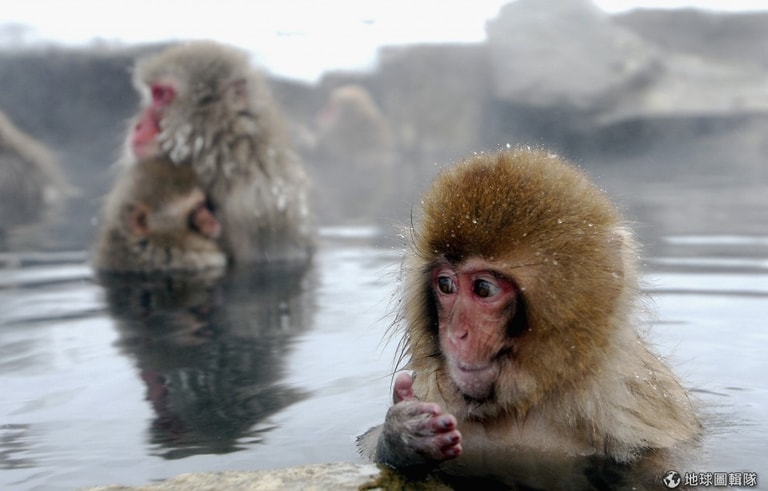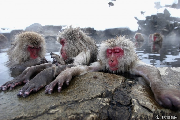 以前都會在卡通動漫中,看到臉紅紅的猴子跟老爺爺和老奶奶一起泡湯,果然是真得!圖片來源:Koichi Kamoshida/Getty Images