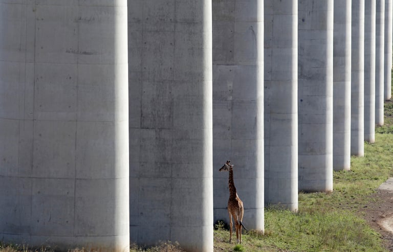 在奈洛比國家公園裡,行經這裡的鐵路採取了架高建設,方便動物們可以從鐵軌下方通道照常移動。