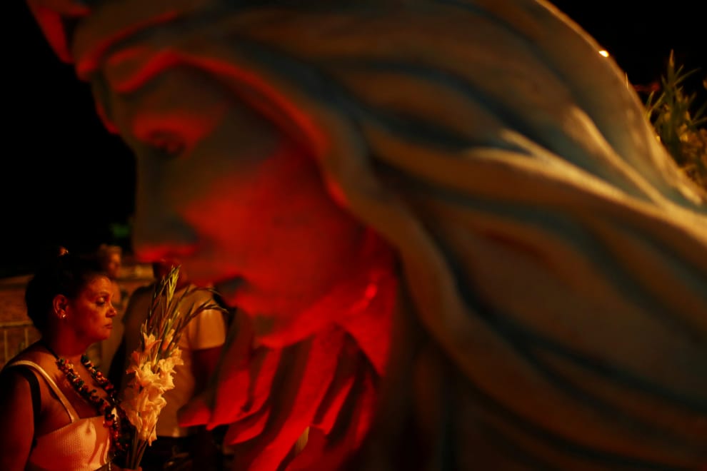 在佩尼亞(Praia)的海灘上,一名非洲裔巴西(Afro-Brazilian)移民準備向海洋女神Yemanja致意,作為新年前夕的傳統慶祝活動。