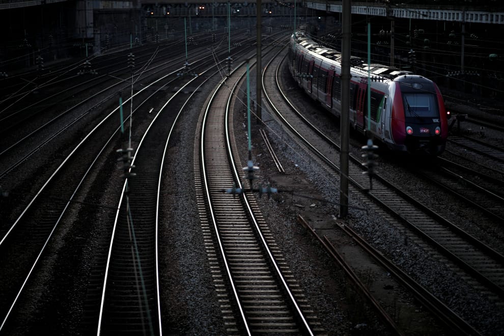 在卡迪涅橋火車站,一輛火車正準備離站。在這天,法國鐵路工人罷工已經邁入第 26天。