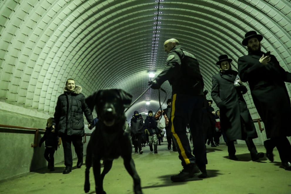 在猶太「Siyum Hashas」慶祝活動現場,紐約市警察在人群之間巡邏,擔心潛在的仇恨犯罪發生。